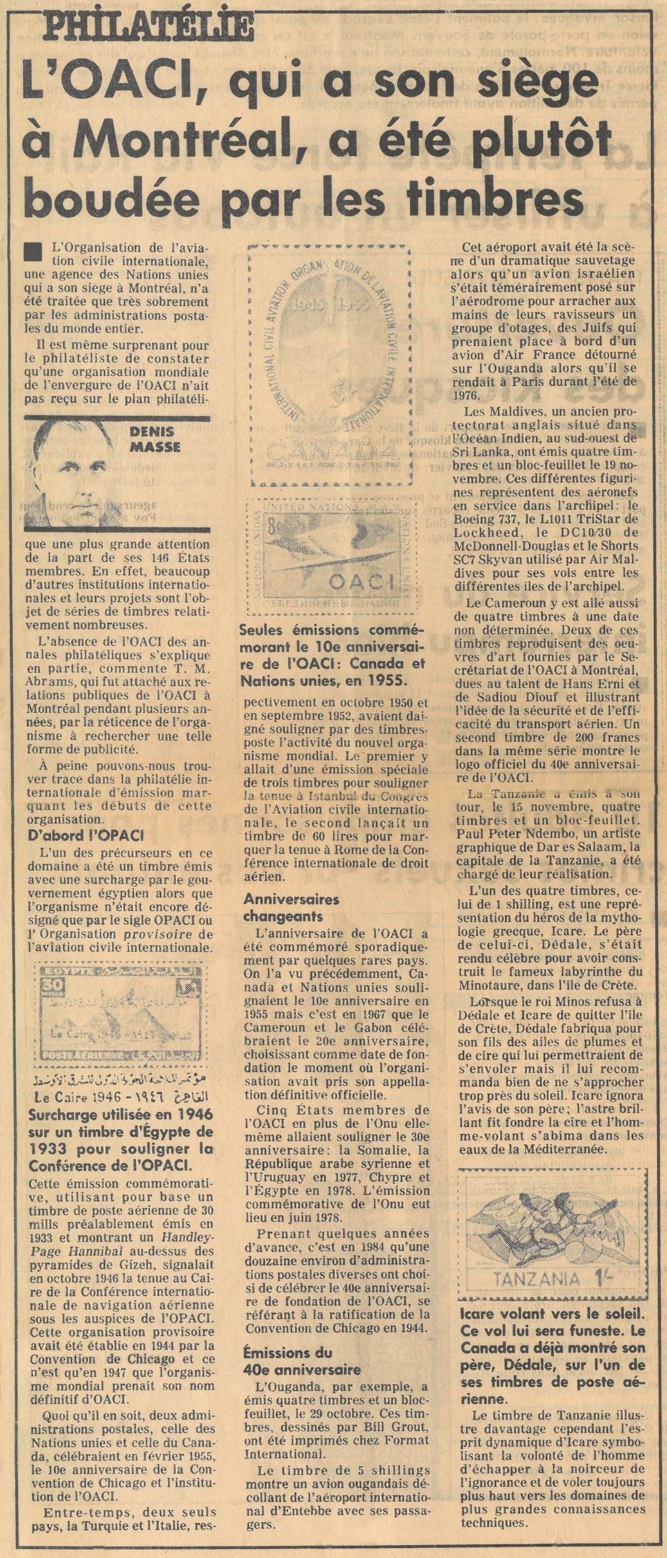 La Presse Newspaper – Philatelic story by Denis Masse, renowned Philatelist – Saturday 8 December 1984. |
